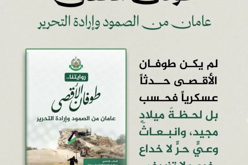 أصدر المكتب الإعلامي لحركة المقاومة الإسلامية (حماس) كتاباً جديداً تحت عنوان "روايتنا.. طوفان الأقصى: عامان من الصمود وإرادة التحرير"، والذي يقدم قراءة شاملة ومعمقة للأحداث التي عصفت بالمنطقة منذ السابع من أكتوبر 2023، موثقاً الرواية الرسمية للحركة حول دوافع العملية، ومسار الحرب، ومستقبل الصراع.