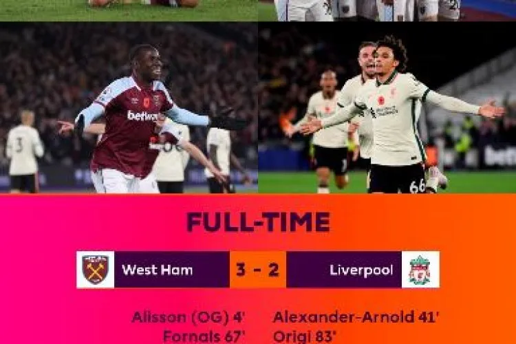 تلقى ليفربول خسارة مريرة أمام مضيفه وست هام يونايتد بنتيجة 2-3 في المباراة التي جمعتهما اليوم الأحد في ختام منافسات الجولة الحادية عشرة من عمر الدوري الإنجليزي الممتاز لكرة القدم.