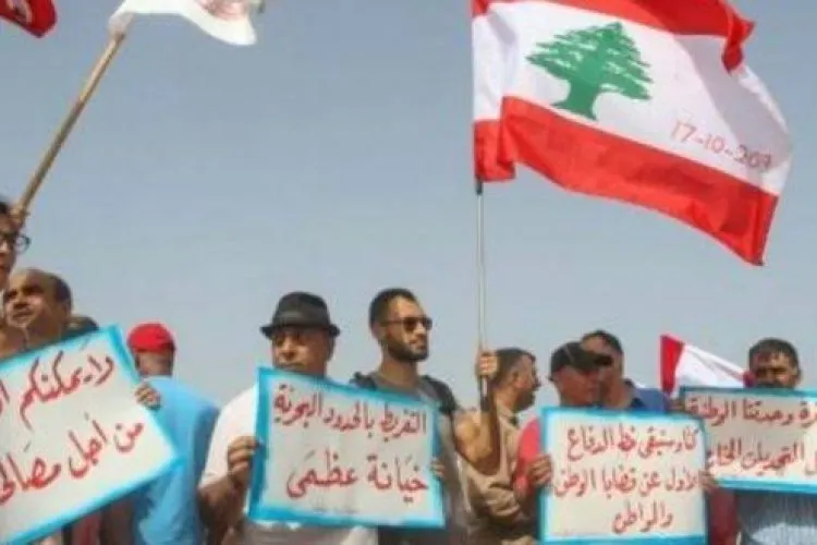 لبنانيون يتظاهرون احتجاجا على قيام دولة الاحتلال باستخراج الغاز من كاريش